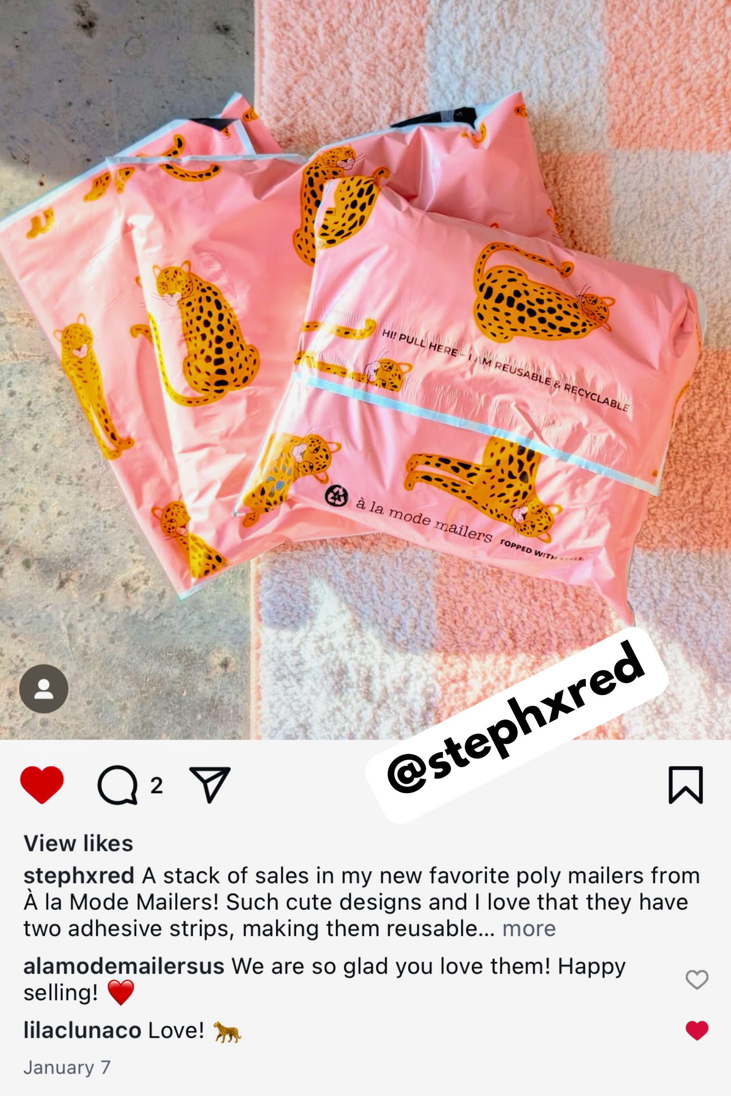Heather is a full-time reseller and loves using à la mode mailers in my business. The quality is durable, the colors and patterns are so fun, and they always make my packages stand out. It’s something my customers consistently compliment, and it adds a special touch to every order.