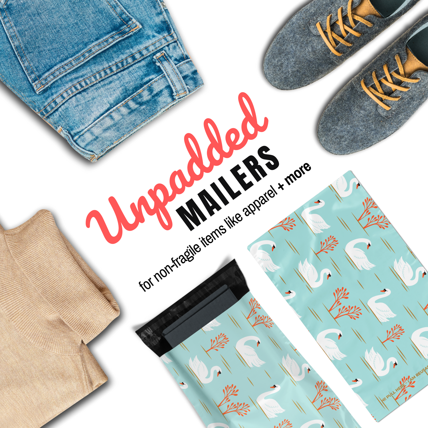 Beauty & Elegance. These swan-themed eco-friendly reusable mailing bags are waterproof, tear-resistant, non-see-through, have an easy-open pull tab, and are equipped with a second, reusable seal perfect for customer returns. Our durable shipping envelopes are designed to exceed your postage needs.